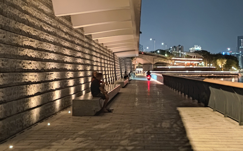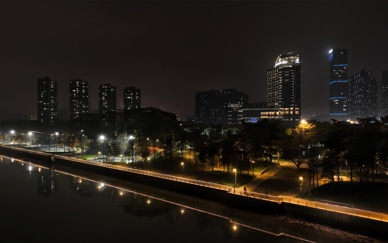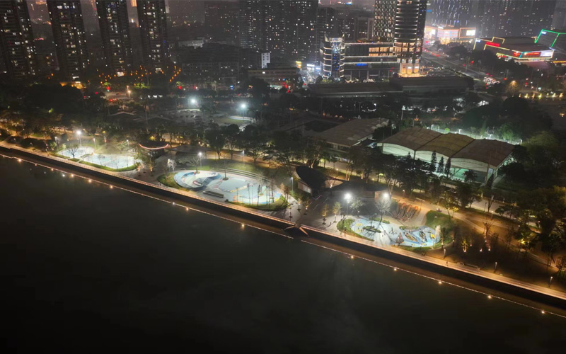 该项目通过灯光亮化工程打造了兼具美学价值与人文内涵的滨水公共休闲空间,新增 鳒鱼洲口袋公园 等设施,成为市民休闲娱乐的新选择,进一步提升了城市公共空间品质。