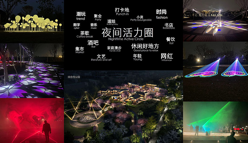 在方案设计过程中,我们首先从项目场地总体规划的角度出发,深入了解各地块的区域功能、定位,使灯光系统尽可能考虑到所有地块内容,使其整体统一且独具各自主题特色。我们特别注重于灯光环境对视觉生理的支持,用灯光创造可辨识的夜间环境;亮度、照度等量化指标的给出有坚实的理论基础,并与实际相符合。同时利用灯光对景观结构进行重组,使其成为感知环境特色的工具。整体布局上呈现多元、有活力的夜景形态,适应多种夜间活动的需要。